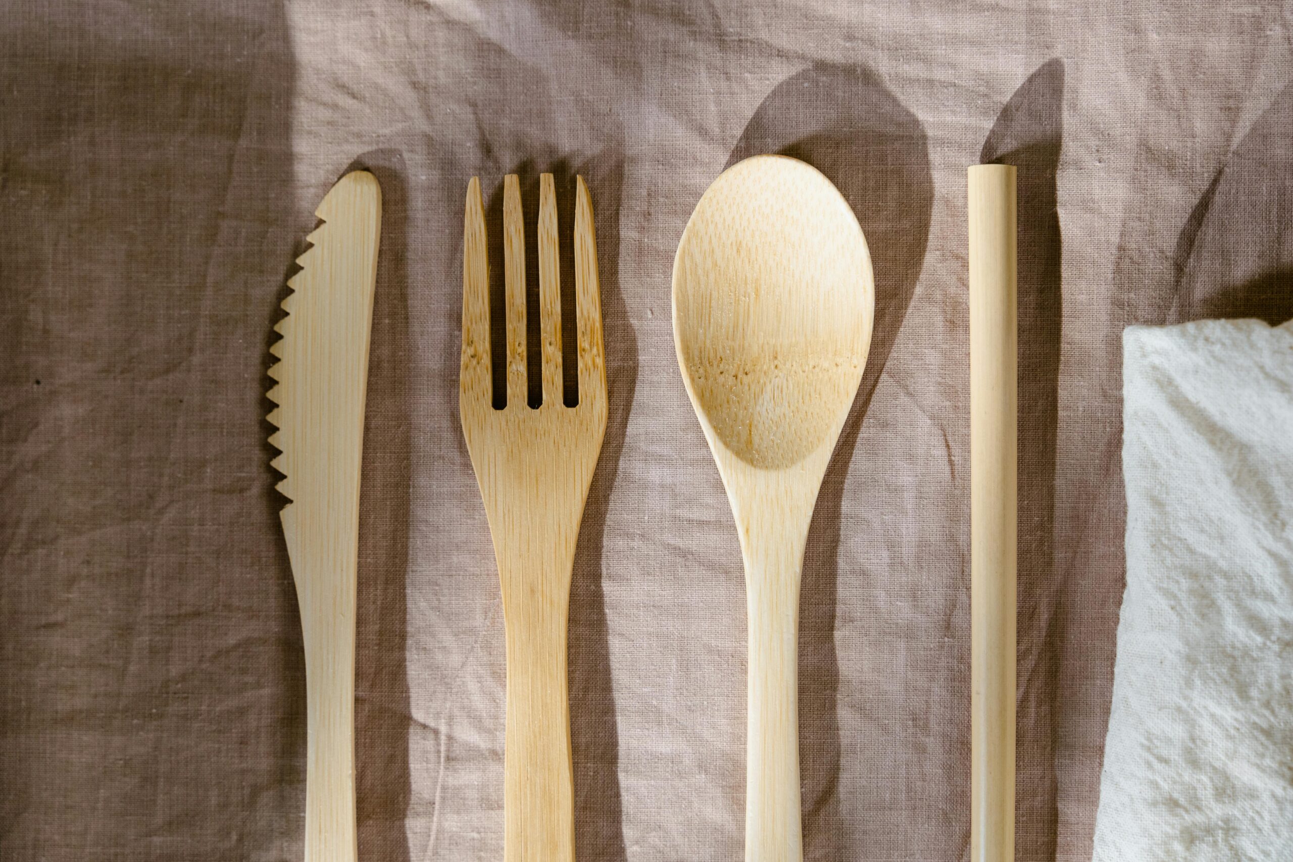 Bambusest söögiriista komplekt: lusikas, kahvel, nuga, kõrs, söögipulgad